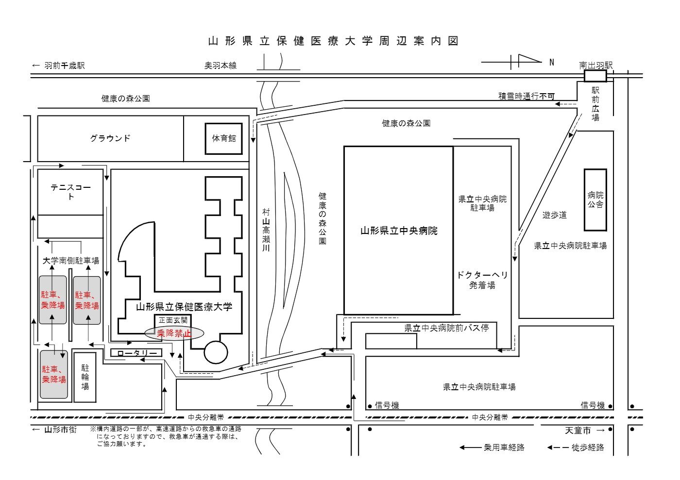 い。受験上の配慮として許可された場合以外は、正面玄関前等の構内道路での乗降を禁止します。