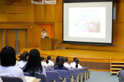 山形県内の高校生123人が「看護体験セミナー」に参加しました。看護の魅力や看護学科の紹介に加えて、テーマ別の4つの模擬授業、看護学生への質問タイムなどを体験してもらいました。参加した高校生からは「実技を含めた講義がおもしろく興味が強くなった」「大学の先輩方からお話を聞くことができてとても参考になった」などの声が聴かれました。山形県看護協会からはキャラクターの「かんごちゃん」も高校生の応援に来てくれました。高校生の皆さんご来学ありがとうございました。